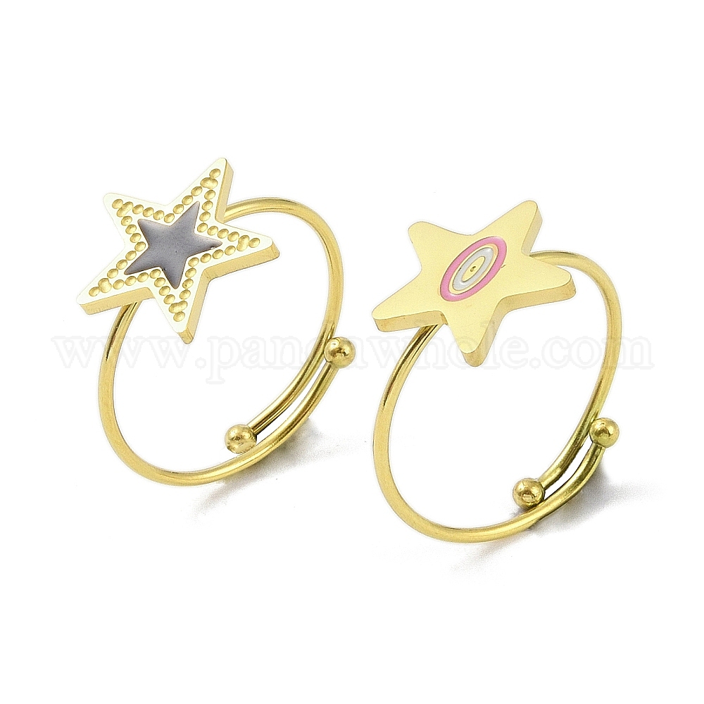 Звезда 304 эмалированное кольцо из нержавеющей стали, без никеля , 316 открытая манжета из хирургической нержавеющей стали для женщин, реальный 18 k позолоченный