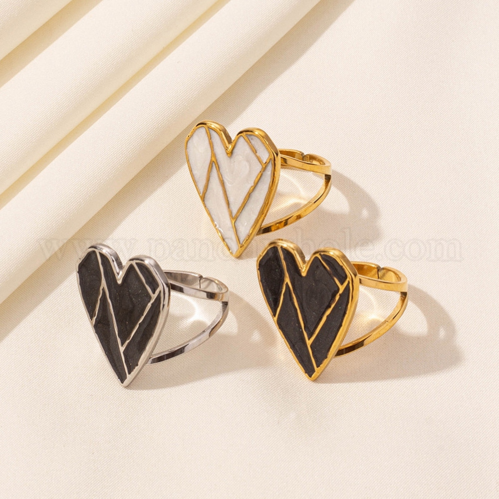 • Золотой Открытое кольцо-манжета из нержавеющей стали с сердцем для женщин, золотые, 21 мм, регулируемый
