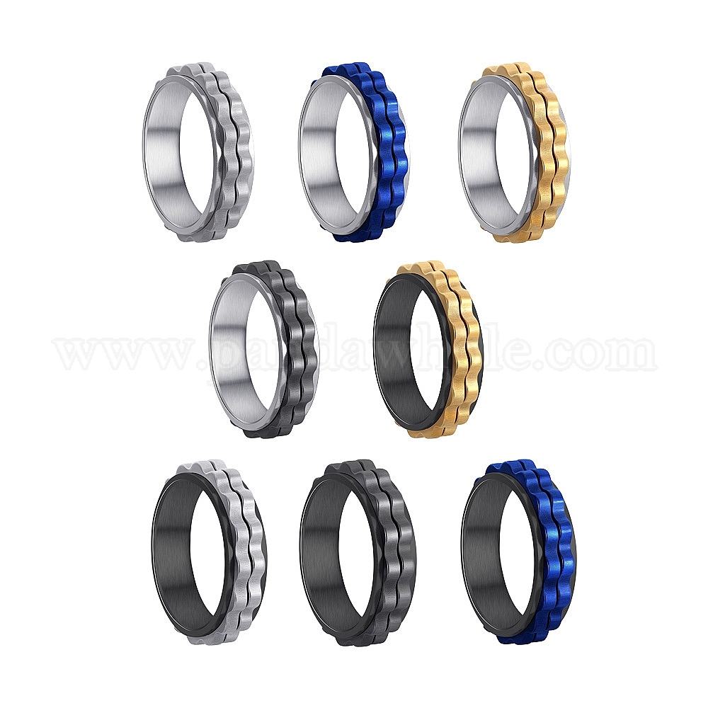 Вращающиеся 304 вращающиеся кольца из нержавеющей стали, Широкие кольца волнообразной формы для женщин и мужчин