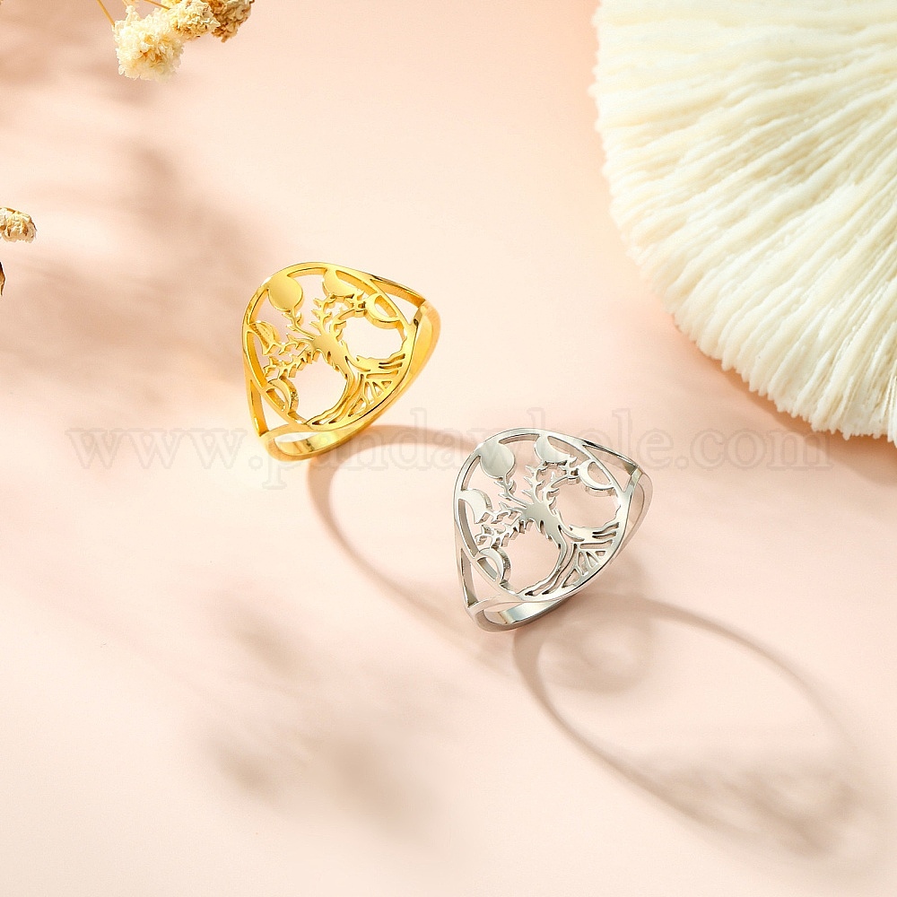 • Нержавеющая Сталь Цвет Кольца для пальцев из нержавеющей стали с полыми фазами Луны и деревом, не тускнеющие, для унисекс, цвет нержавеющей стали, размер США 6 (16.5 мм)