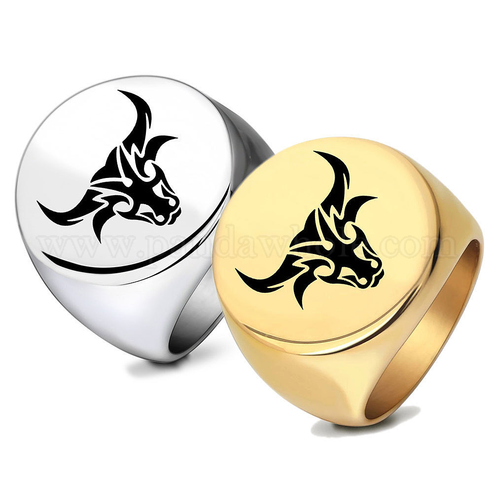 • Золотой Модные мужские перстни-печатки из нержавеющей стали, крупный рогатый скот, золотые, размер США 8 (18.1 мм)