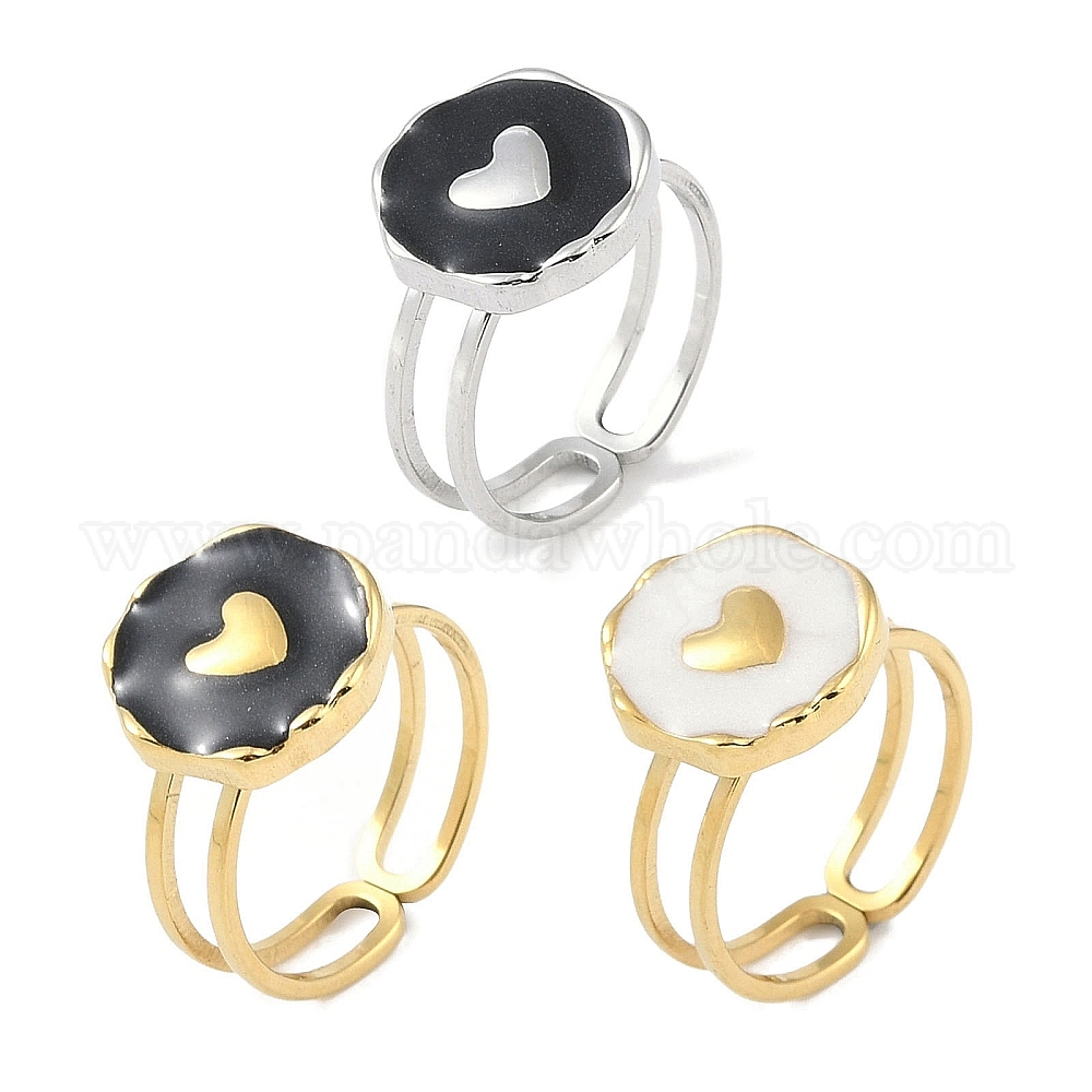 Ионное покрытие (ip) 304 эмаль из нержавеющей стали, плоская круглая форма, с кольцами на пальцах в виде сердечной манжеты, открытые кольца для женщин