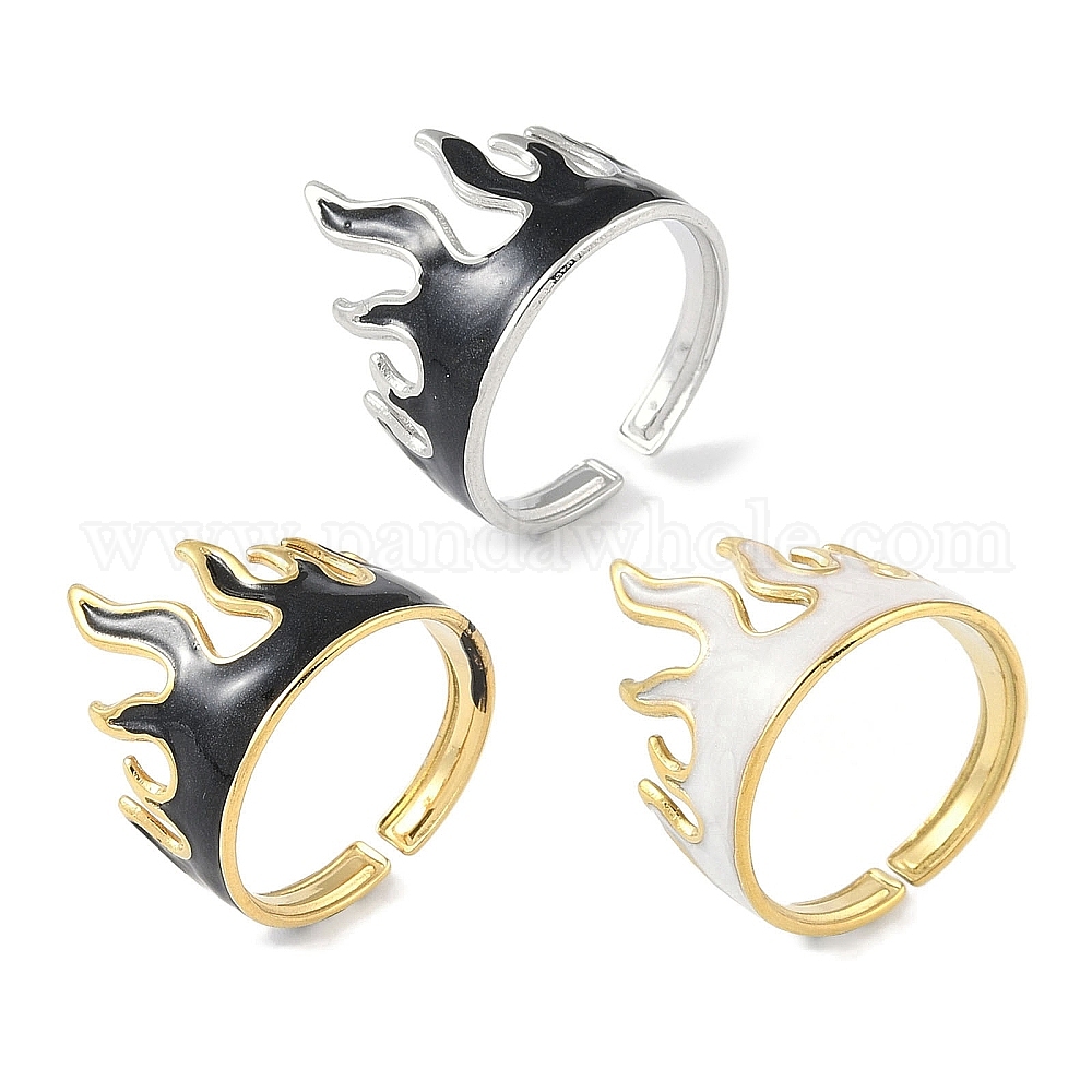 Ионное покрытие (ip) 304 эмаль из нержавеющей стали, манжеты в форме пламени, кольца на пальцах, открытые кольца для женщин