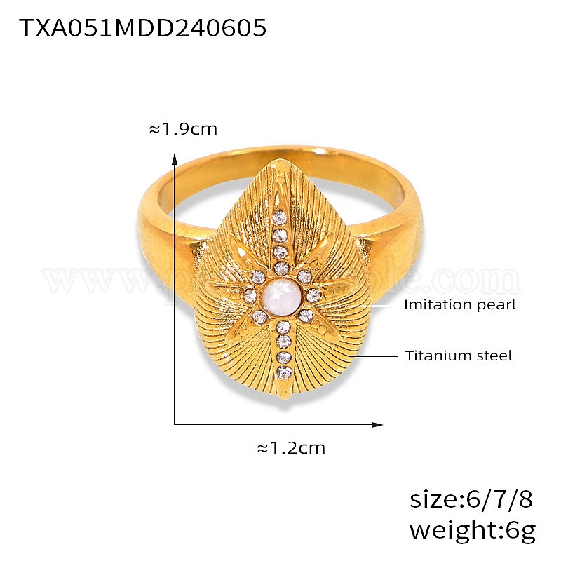 • Золотой Кольца из нержавеющей стали, с имитацией жемчуга, для женщин, слеза, золотые, размер США 6 (16.5 мм)
