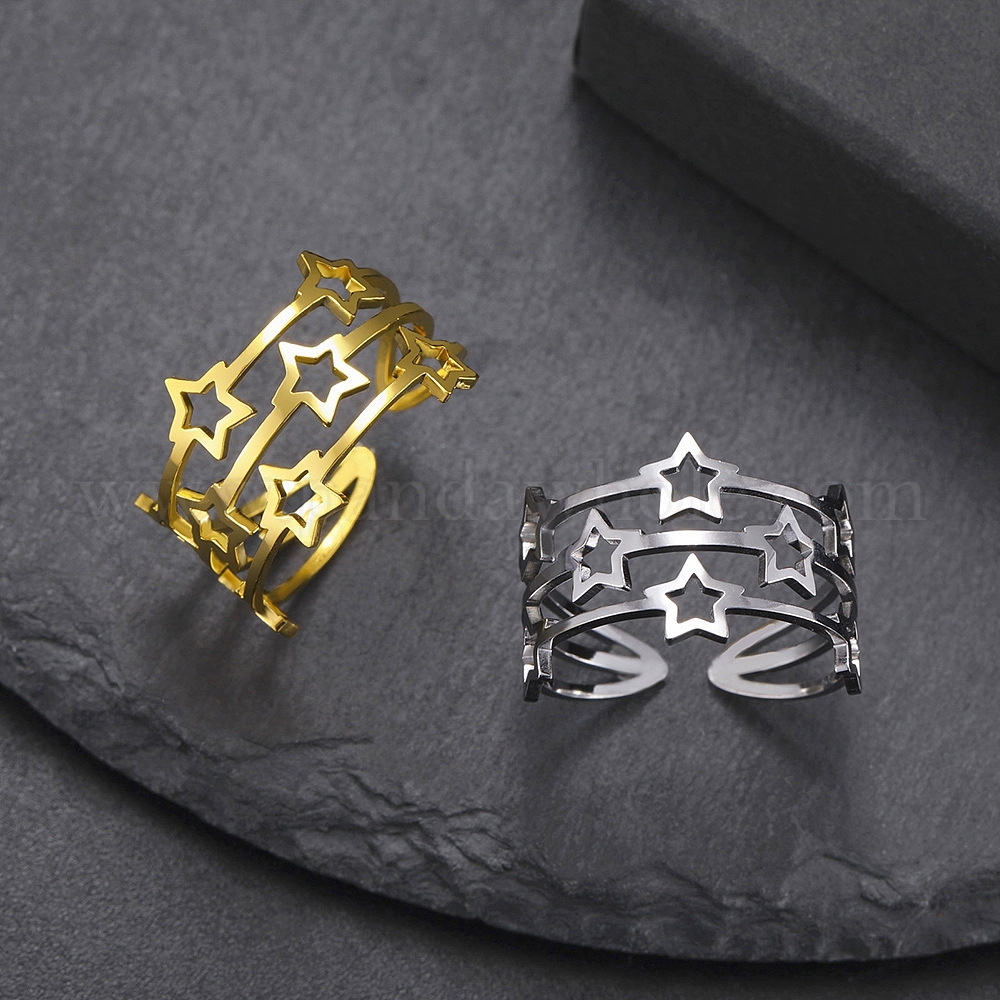 • Нержавеющая Сталь Цвет Кольца-манжеты из нержавеющей стали, не тускнеющие, звезда, цвет нержавеющей стали, 13.4 мм