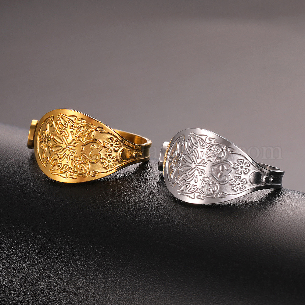 • Нержавеющая Сталь Цвет Регулируемые кольца из нержавеющей стали с цветочным узором, не тускнеющие, украшения для унисекс, цвет нержавеющей стали, 12.1 мм, внутренний диаметр: регулируемый