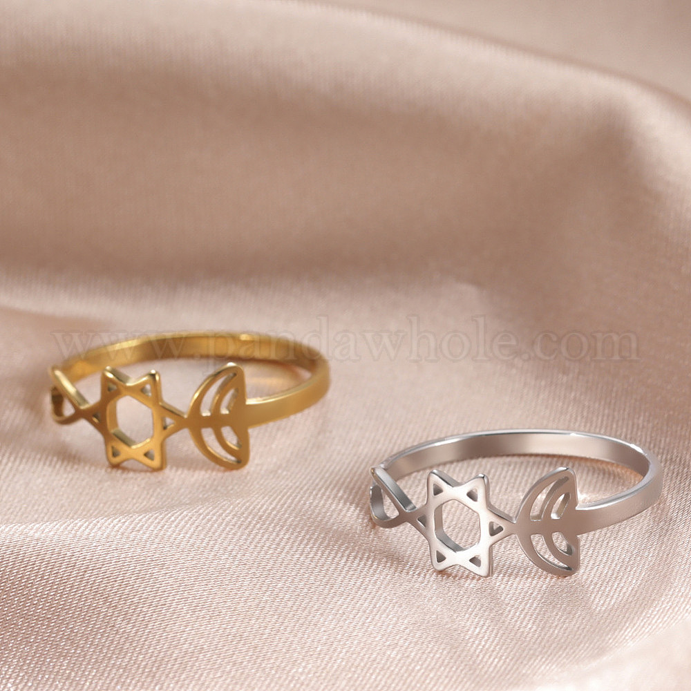 Кольца из нержавеющей стали «Луна и звезда Давида», украшения для унисекс