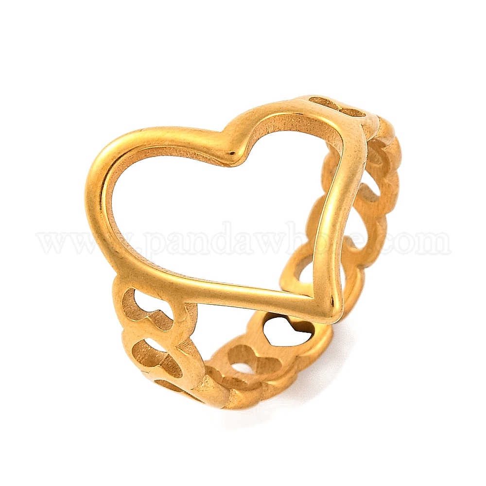 Ионное покрытие (IP) 304 кольца на палец с полым сердцем и открытой манжетой из нержавеющей стали для женщин