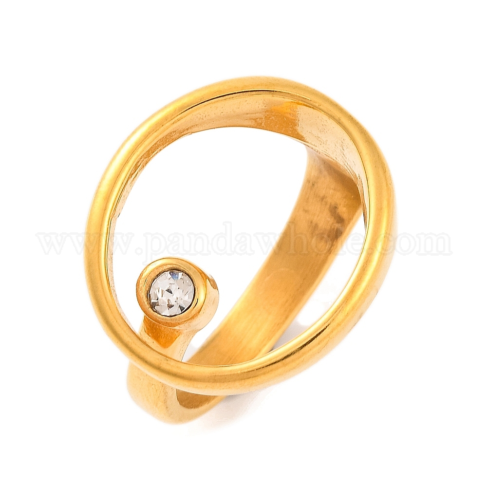 • Золотой Ионное покрытие (ip) 304 овальные кольца-манжеты из нержавеющей стали со стразами для женщин, золотые, 19 мм, размер США 6 (16.5 мм)
