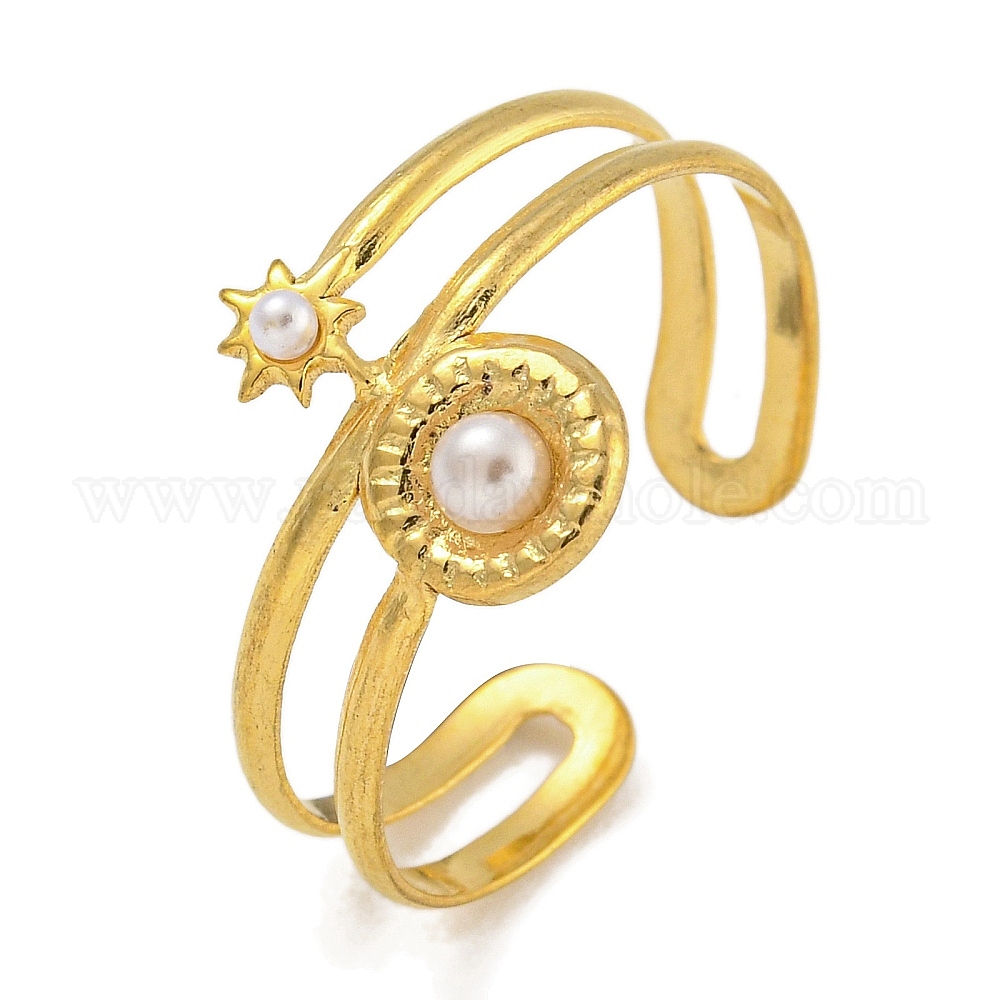 Звезда и круг 304 открытое кольцо-манжета из нержавеющей стали для женщин, Кольца для пальцев из пластика АБС с имитацией жемчуга