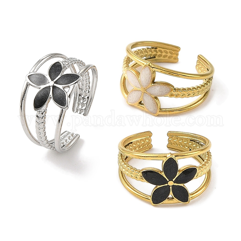 Цветок 304 эмалированные открытые манжеты из нержавеющей стали для женщин, ионное покрытие (ip) (02XGYZ)