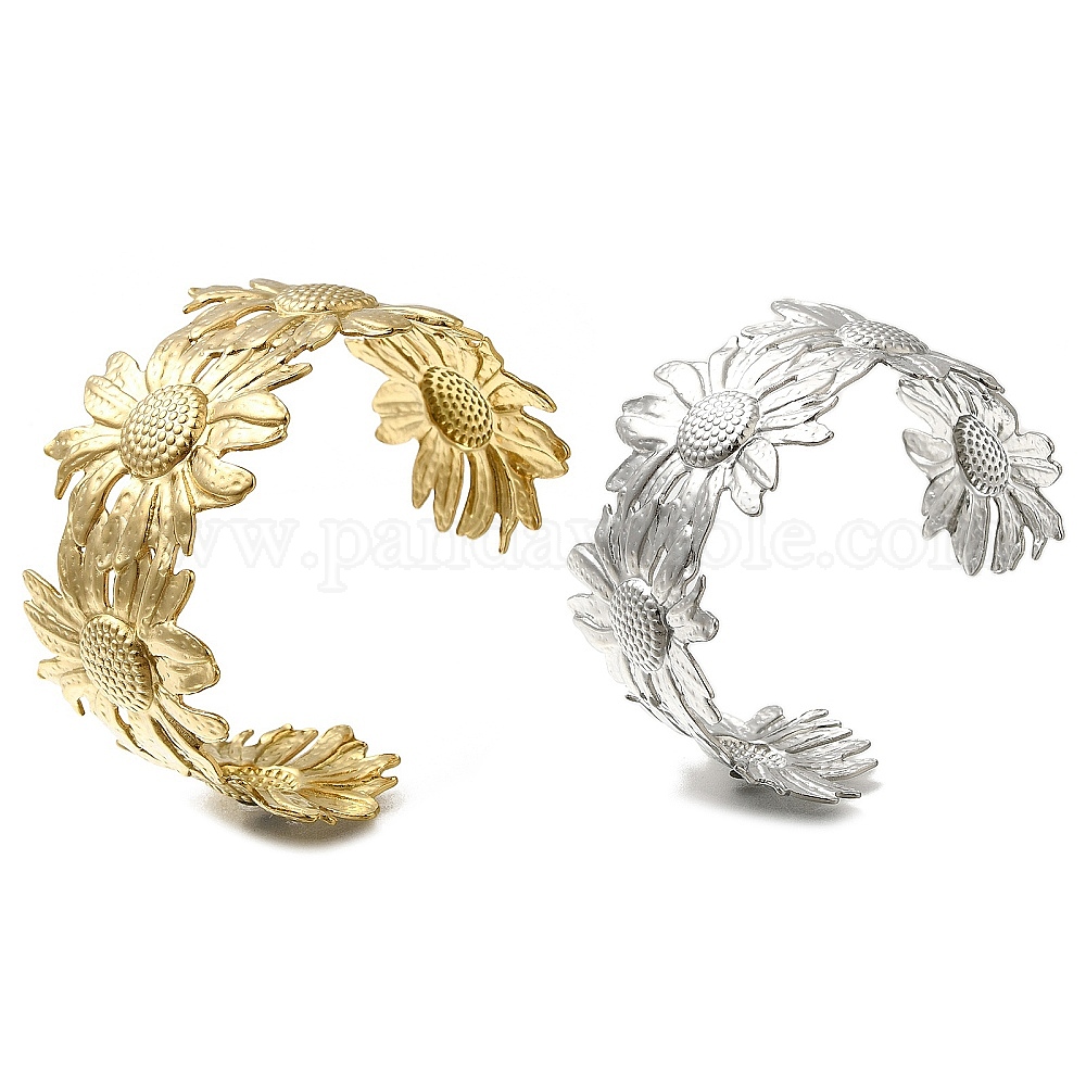 • Нержавеющая Сталь Цвет 304 манжета из нержавеющей стали для женщин, цветок, цвет нержавеющей стали, 37 мм, регулируемый