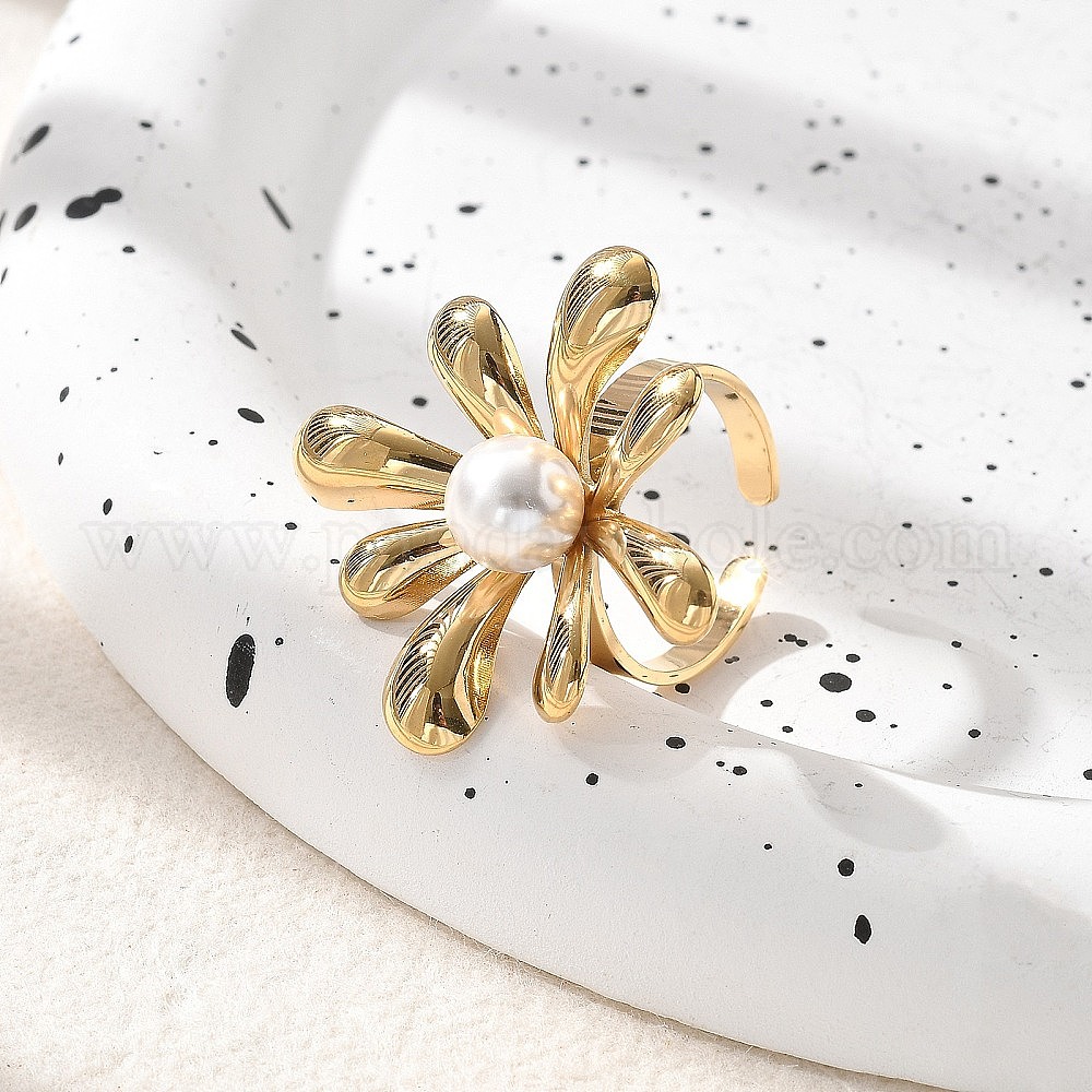Цветок 304 манжеты из нержавеющей стали для женщин, с имитацией жемчуга
