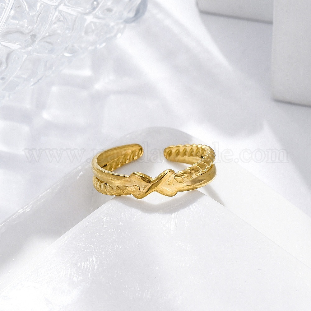• Золотой 304 открытые манжеты из нержавеющей стали, кольца крест-накрест для женщин, золотые, регулируемый, 4.5 мм