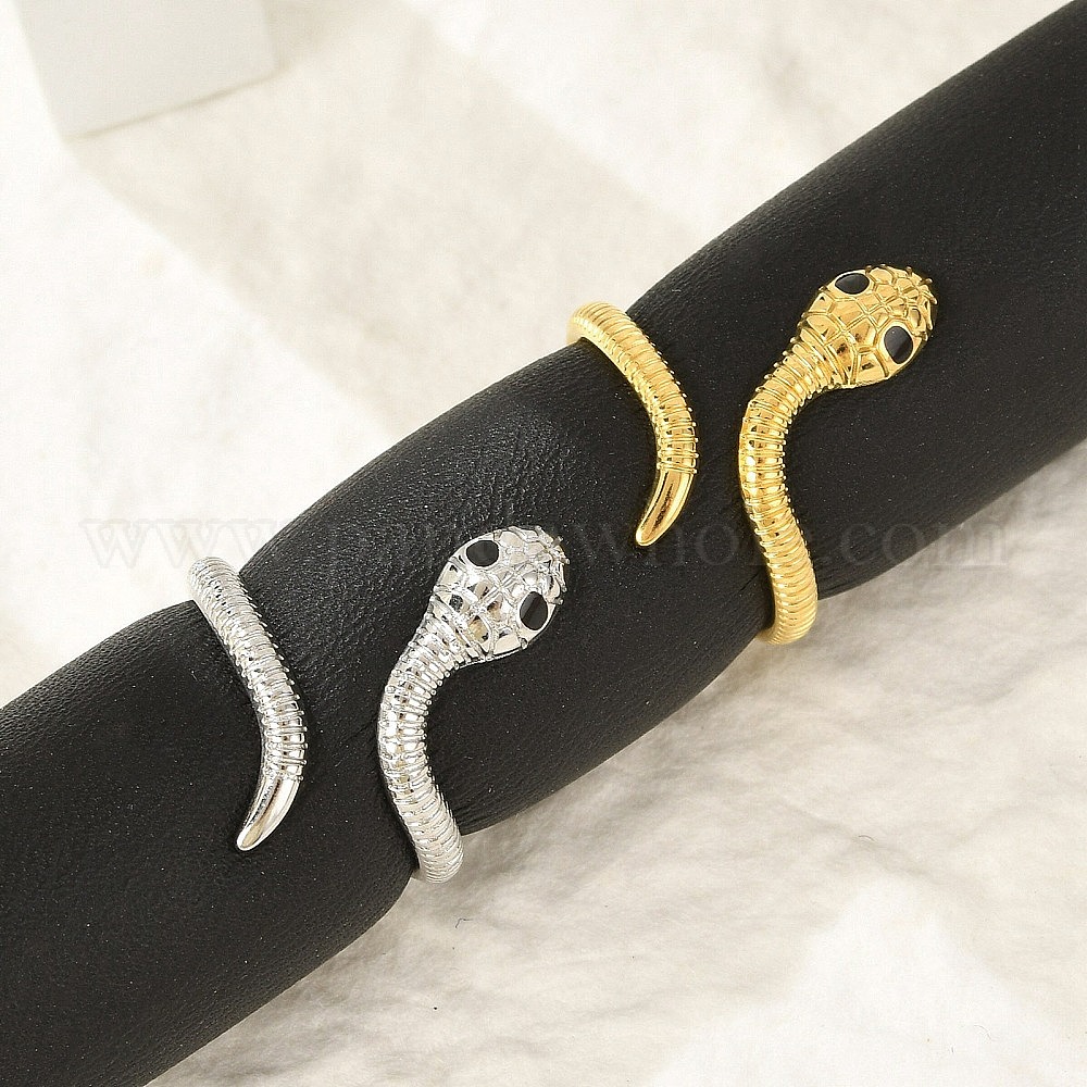 304 манжеты из нержавеющей стали с черной эмалью для женщин, змея открытые кольца