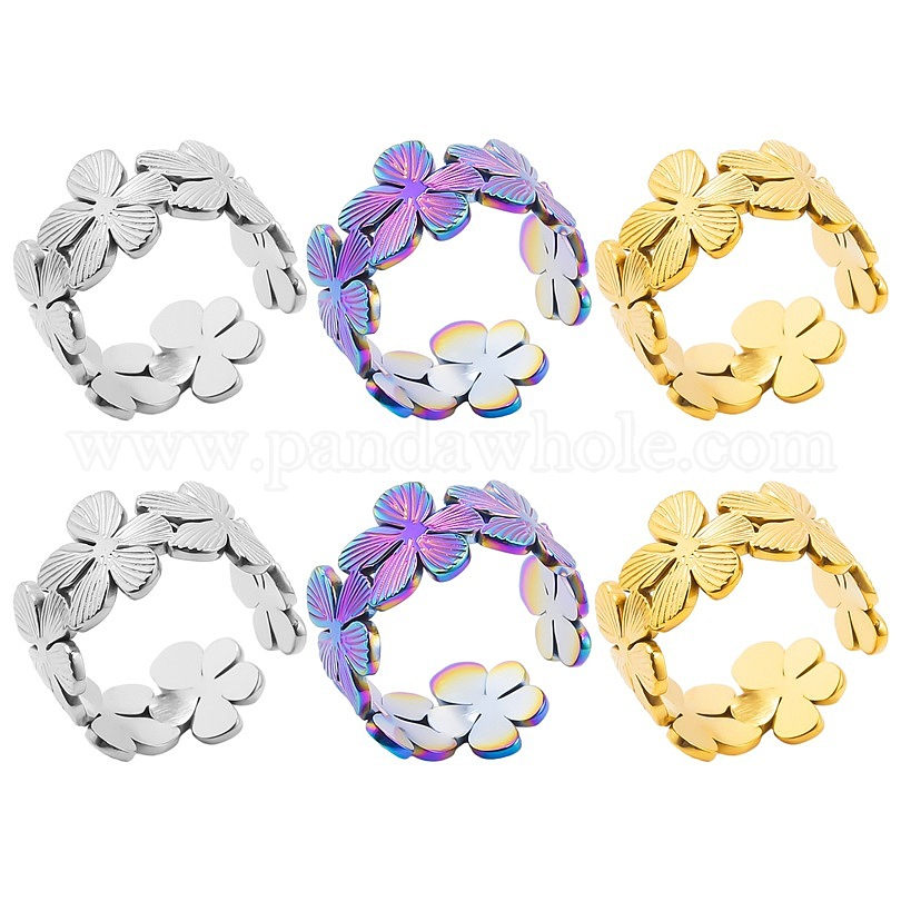 304 кольцо из нержавеющей стали с цветочным узором, унисекс простое регулируемое отверстие