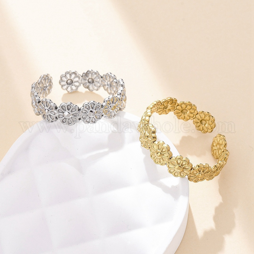304 открытая манжета из нержавеющей стали для женщин, цветок