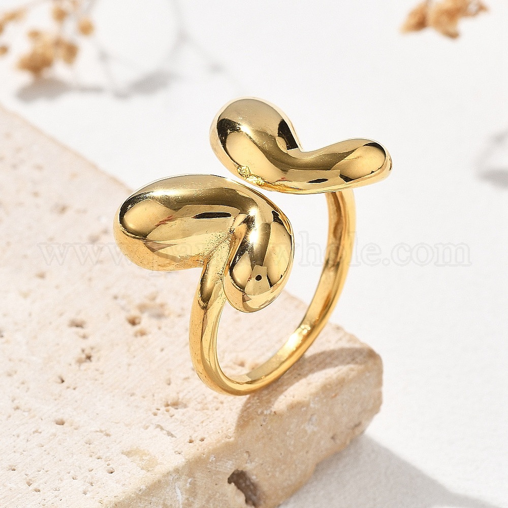 • Золотой 304 манжеты-бабочки из нержавеющей стали, ионное покрытие (ip), золотые, размер США 7 1/4 (17.5 мм)