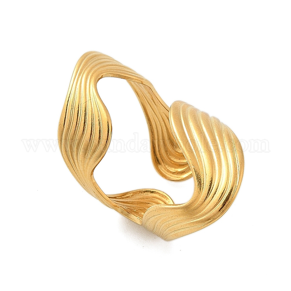 • Настоящее золото 18K Нерегулярные 304 открытые манжетные кольца из нержавеющей стали, реальный 18 k позолоченный, 32.8 мм, регулируемый
