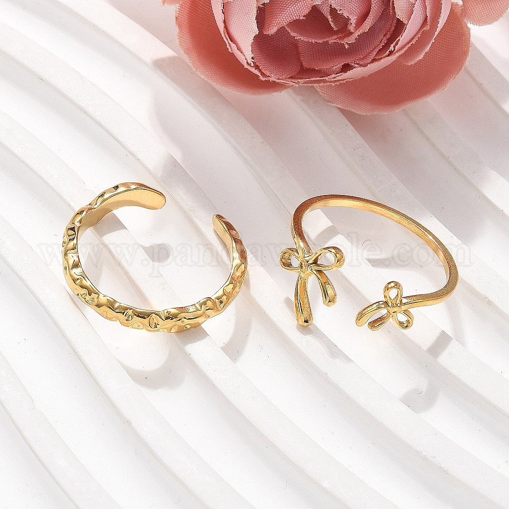 • Настоящее золото 18K 304 Кольца-манжеты из нержавеющей стали с бантом, реальный 18 k позолоченный, 11 мм, размер США 8 1/2 (18.5 мм)