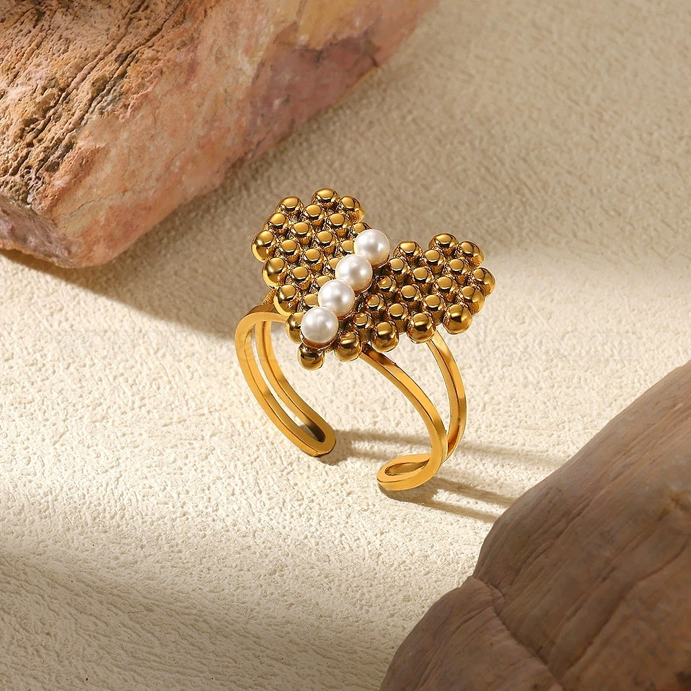 304 Женское кольцо-манжета с открытым жемчугом и пластиковым покрытием из нержавеющей стали, сердце