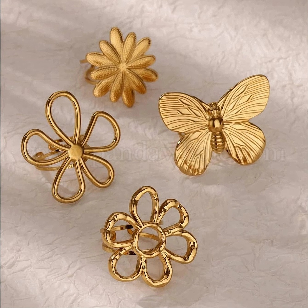 304 из нержавеющей стали манжеты кольца, цветок и бабочка