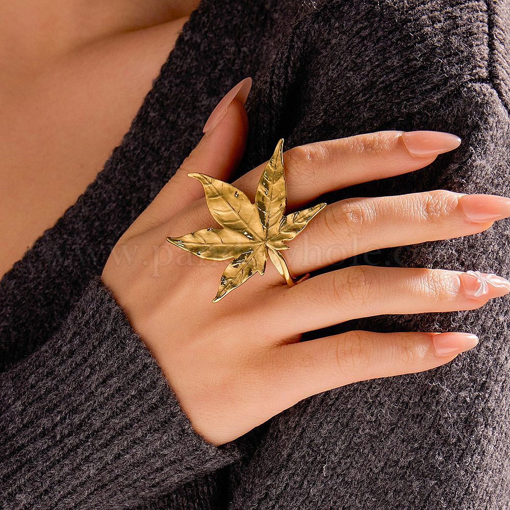 • Настоящее золото 18K Лист 304 регулируемые открытые манжеты из нержавеющей стали для женщин, реальный 18 k позолоченный, лист: 41.5x47 мм, внутренний диаметр: регулируемый