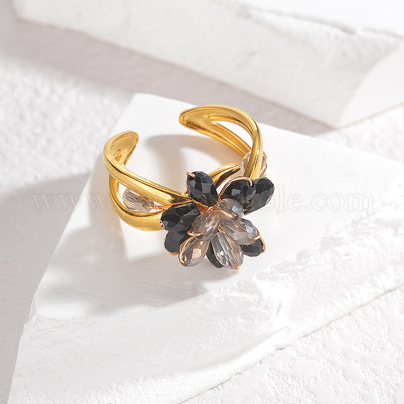 304 регулируемые манжетные кольца из нержавеющей стали со стеклянным кристаллом, цветок, для женщин