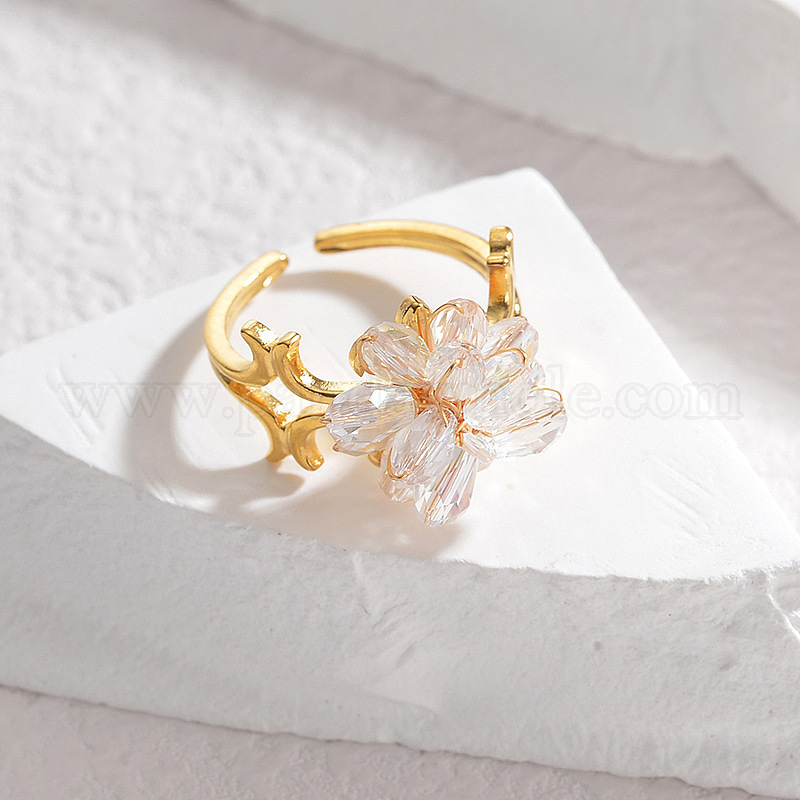 304 манжетные кольца из нержавеющей стали со стеклянным кристаллом, цветок, для женщин