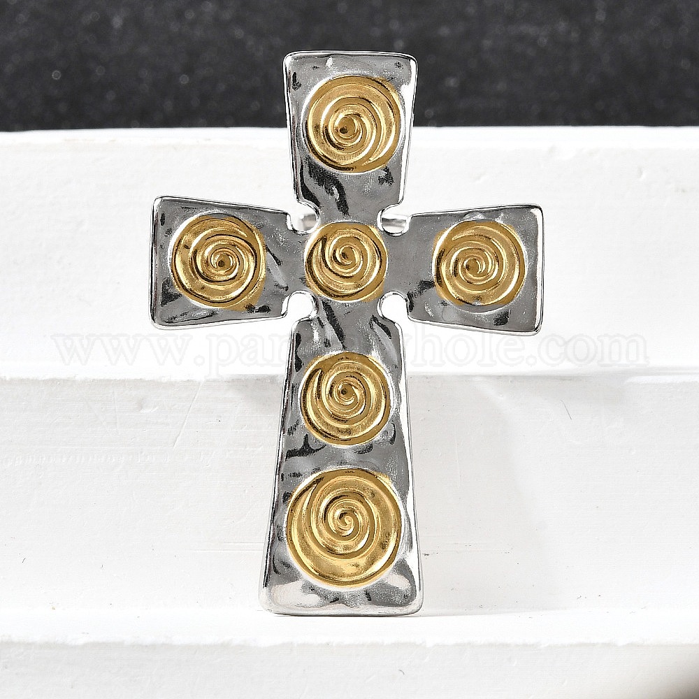 • Позолоченный и Цвет Нержавейки 304 из нержавеющей стали манжеты кольца, спиральный крест, ионное покрытие (ip), настоящее золото и нержавеющая сталь, 43x30.5 мм, размер США 7 1/4 (17.5 мм)