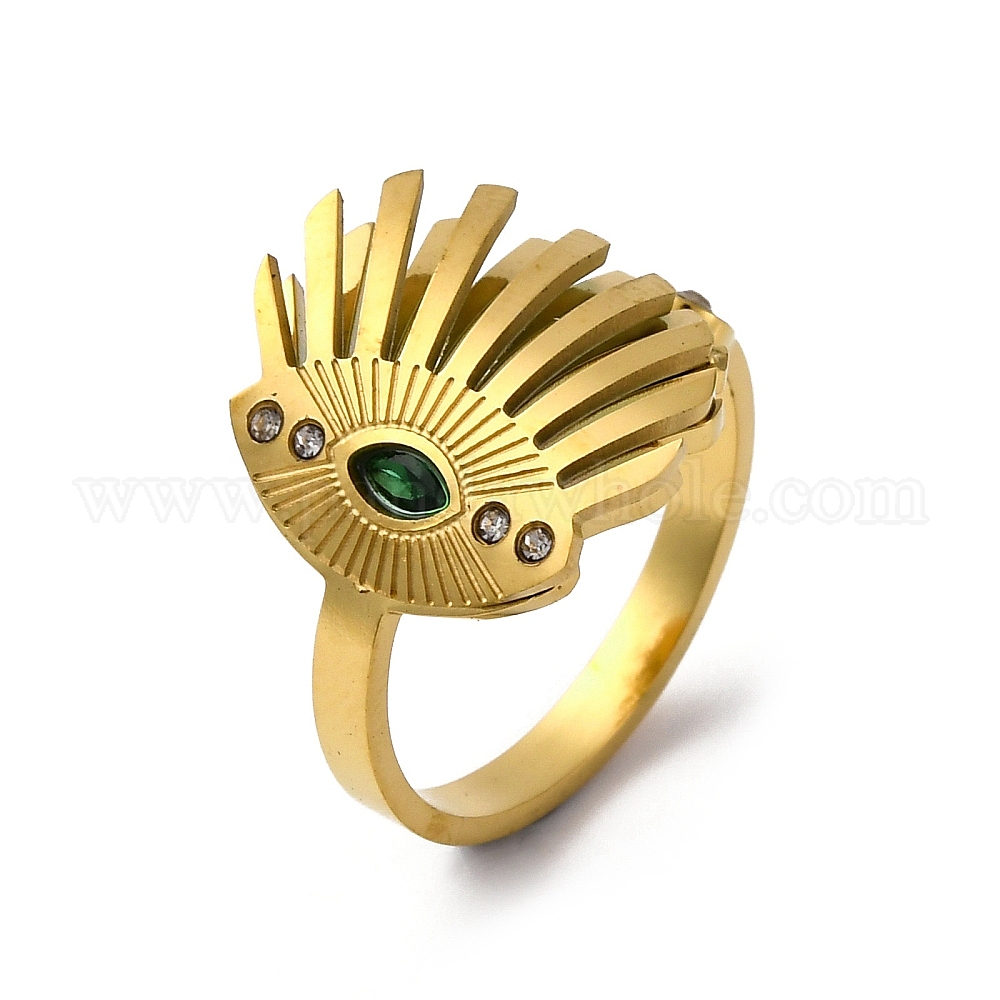 • Настоящее золото 18K 304 нержавеющая сталь с открытыми кольцами из стразов, ионное покрытие (ip), злые глаза, реальный 18 k позолоченный, 16 мм, размер США 7 1/4 (17.5 мм)