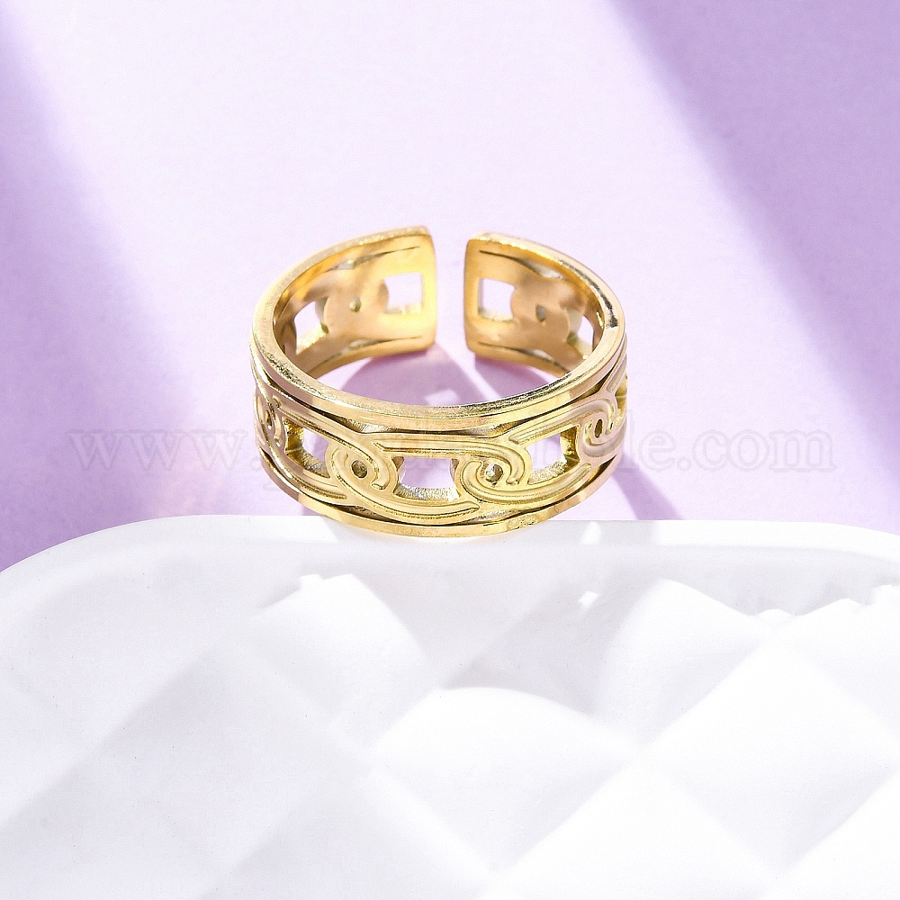 • Настоящее золото 18K 304 из нержавеющей стали манжеты кольца, ионное покрытие (ip), реальный 18 k позолоченный, 7.5 мм, регулируемый