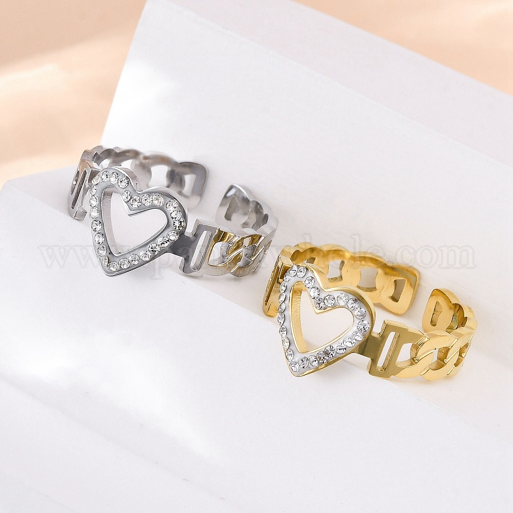 304 нержавеющая сталь с регулируемыми манжетами из стразов, сердце, ионное покрытие (ip)