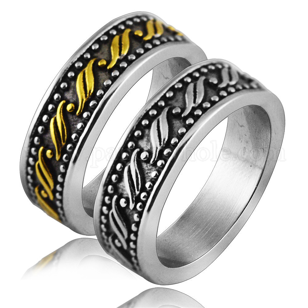 • Античный Серебрянный & Античный Золотой 304 палец кольца из нержавеющей стали, старинное серебро и античный золотой, 7 мм, размер США 7 (17.3 мм)