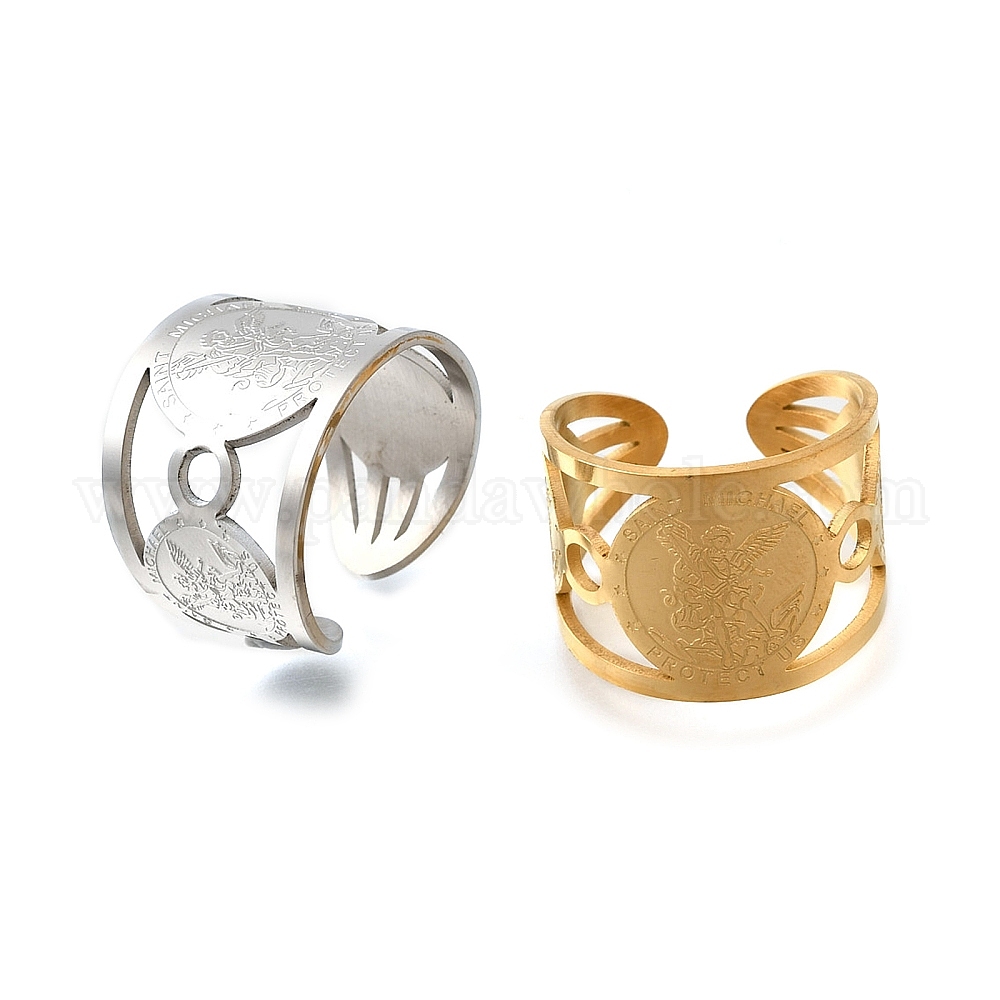 • Настоящее золото 18K 304 открытые кольца манжеты из нержавеющей стали, ангел, реальный 18 k позолоченный, 16 мм
