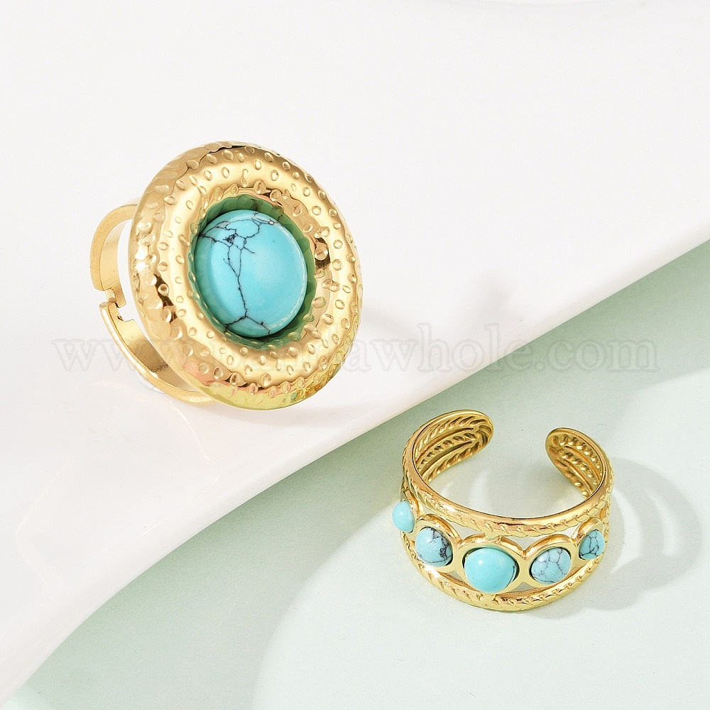 304 кольца из нержавеющей стали, с синтетическими бирюзовый