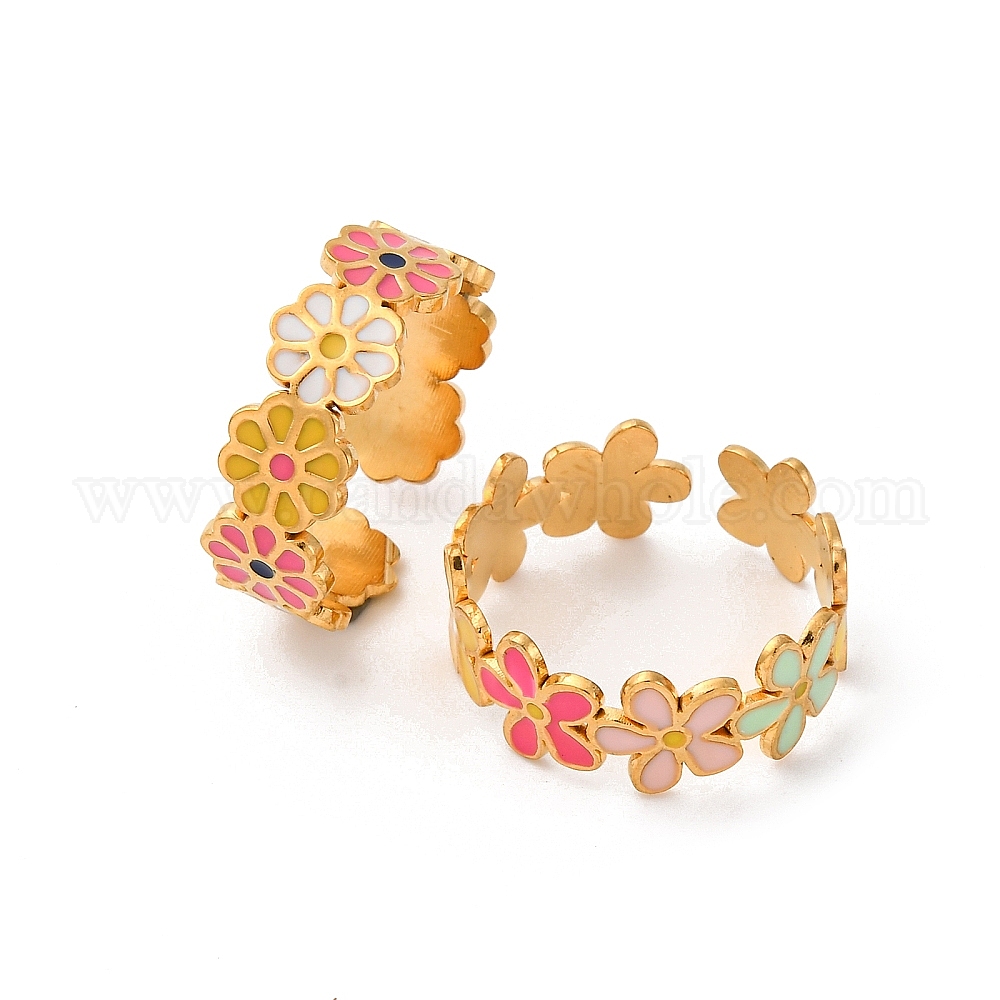 304 из нержавеющей стали манжеты кольца, цветок, с эмалью