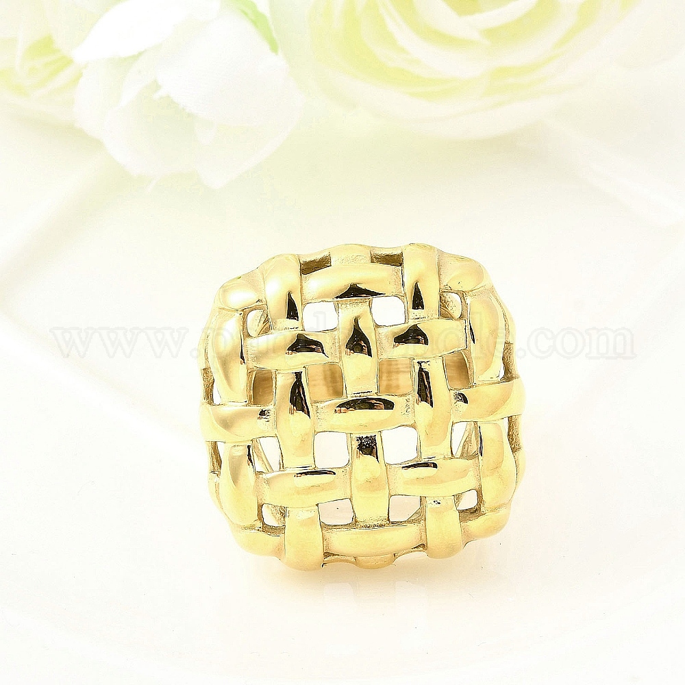 • Настоящее золото 18K 304 палец кольца из нержавеющей стали, сетка, ионное покрытие (ip), ручная полировка, реальный 18 k позолоченный, 26x26 мм, внутренний диаметр: 17.6 мм