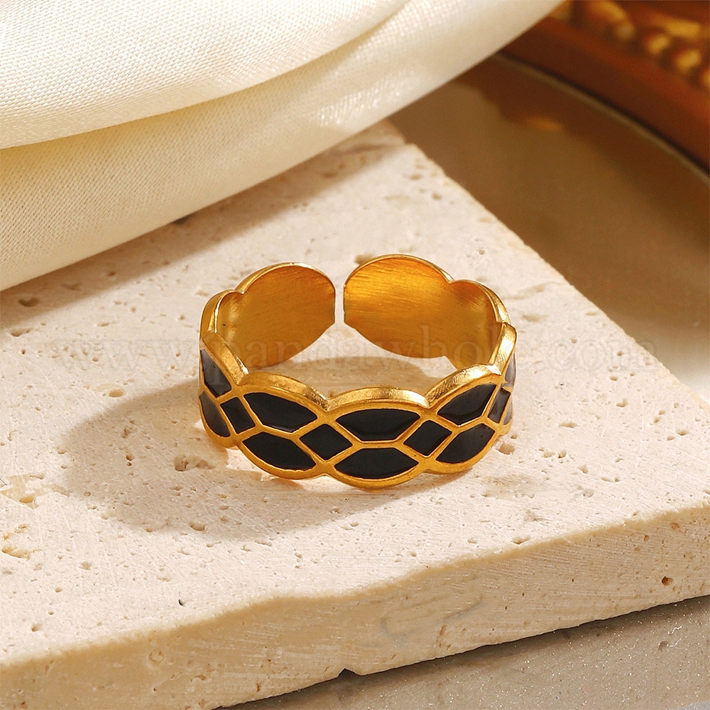 • Золотой 304 из нержавеющей манжеты кольца стальные эмалированные, золотые, 7 мм, внутренний диаметр: 18 мм