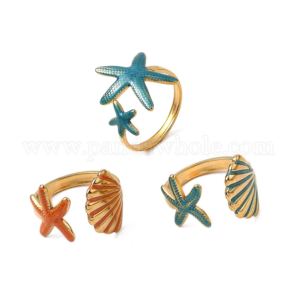 • Золотой 304 из нержавеющей манжеты кольца стальные эмалированные, морская звезда и ракушка, золотые, 15 мм, внутренний диаметр: 18 мм