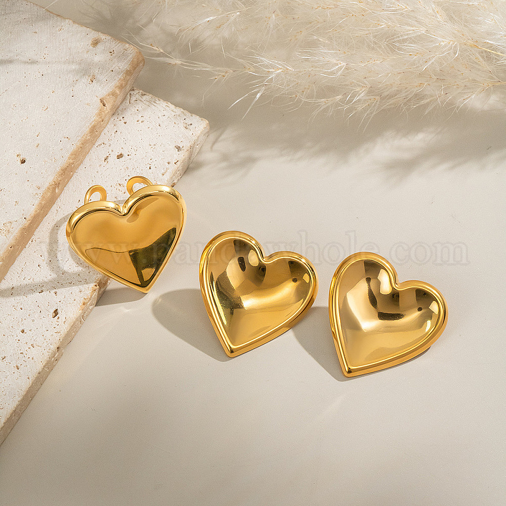 • Настоящее золото 18K Манжеты-кольца в форме сердца из нержавеющей стали, реальный 18 k позолоченный, 32.5 мм, внутренний диаметр: 18 мм