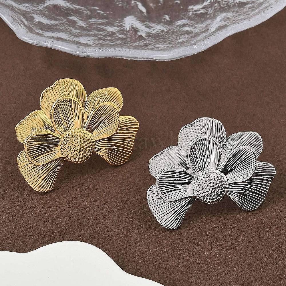 304 открытые кольца-манжеты из нержавеющей стали для женщин, форма камелии