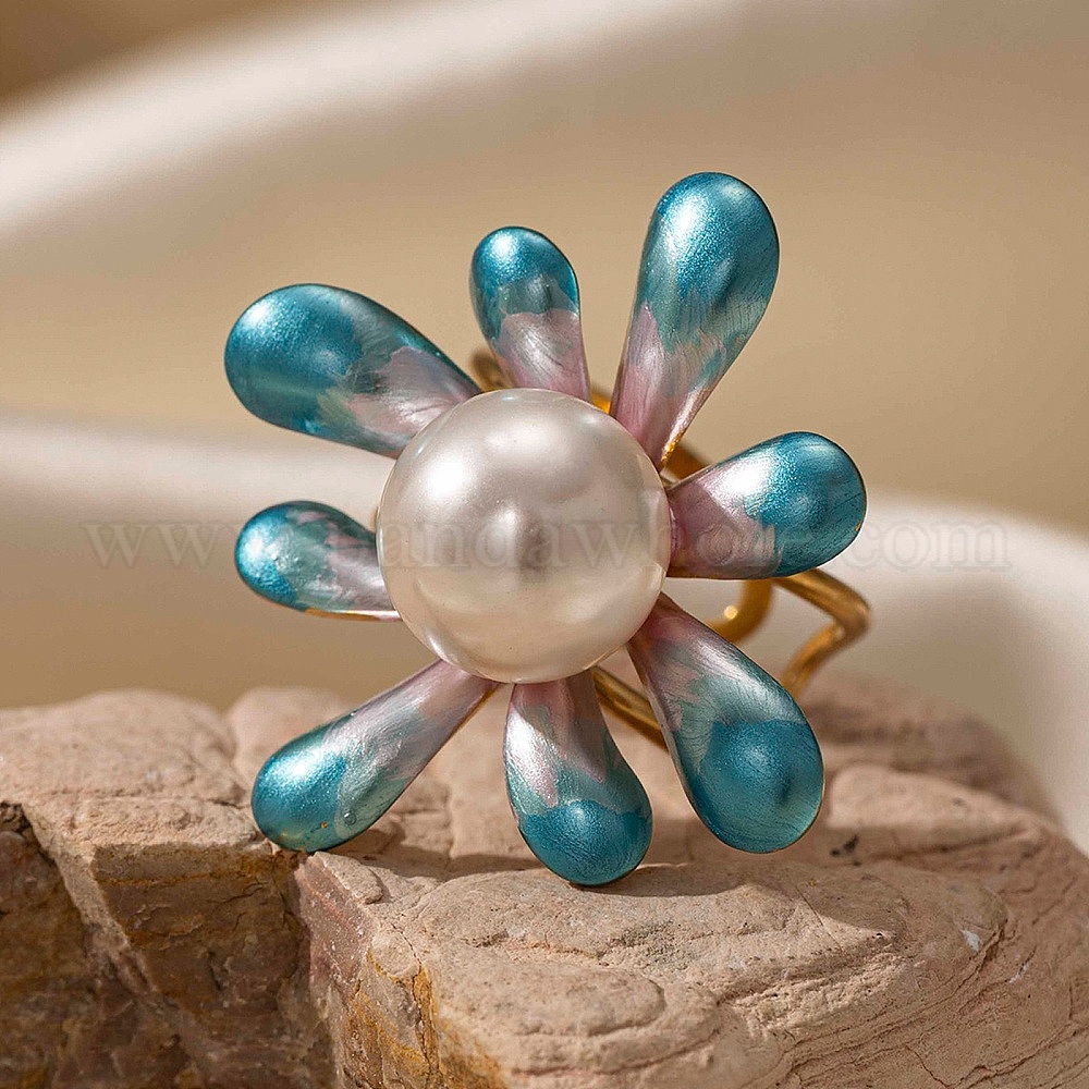 304 открытые манжеты из нержавеющей стали для женщин, цветок, с ABS имитации жемчуга
