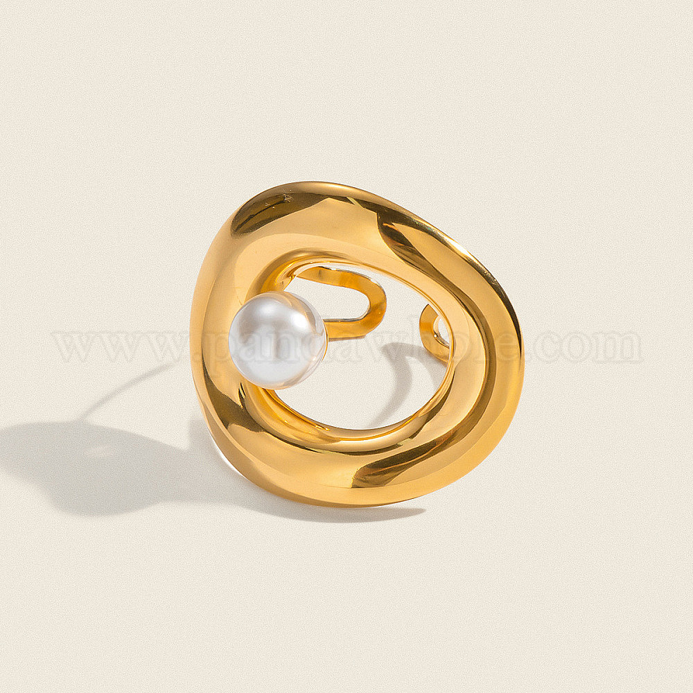 304 из нержавеющей стали Манжета кольца для женщин, круглые, с имитацией жемчуга