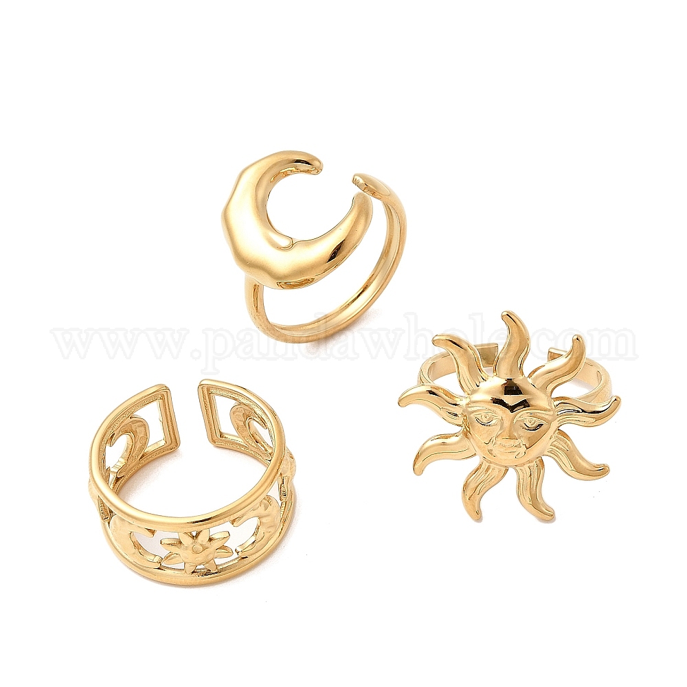304 из нержавеющей стали Манжета кольца для женщин, солнце, ионное покрытие (ip), без кадмия, без никеля и без свинца, золотые