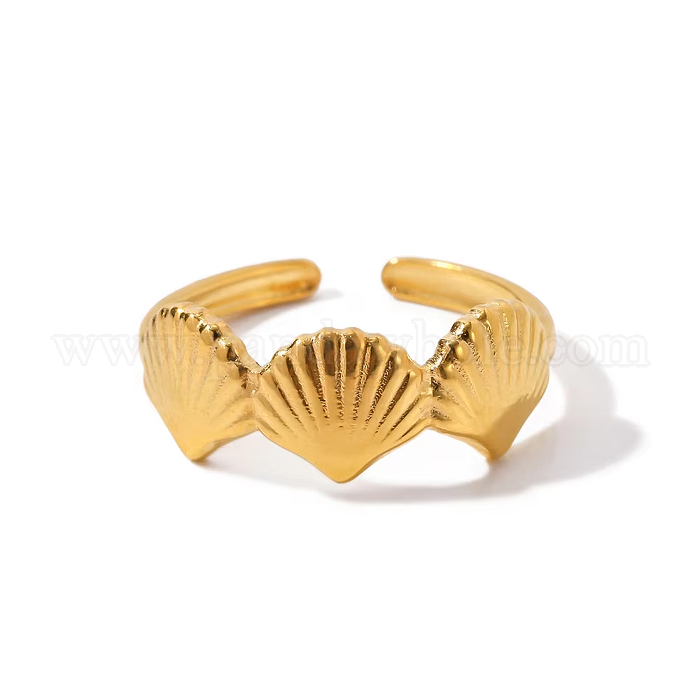 Регулируемые 304 манжеты из нержавеющей стали с кубическим цирконием открытые кольца для женщин, формы раковины