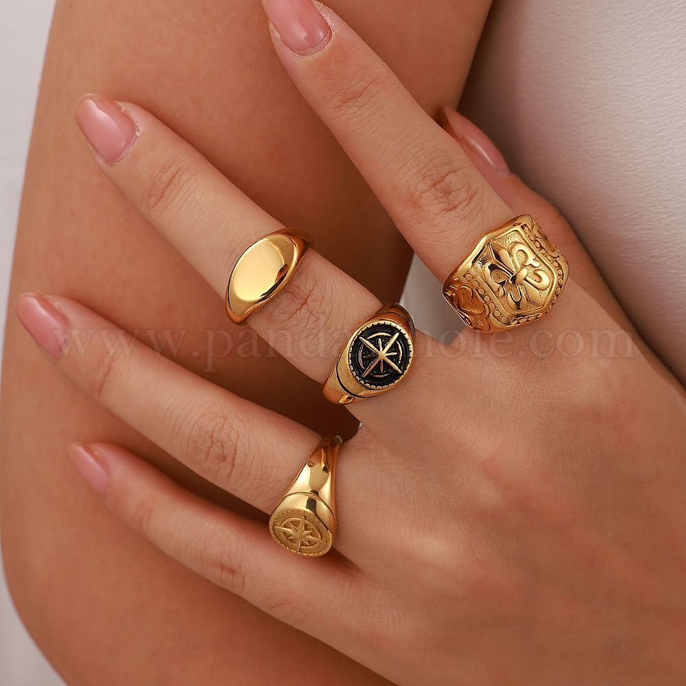 304 палец кольца из нержавеющей стали, Флер-де-Лис/компас
