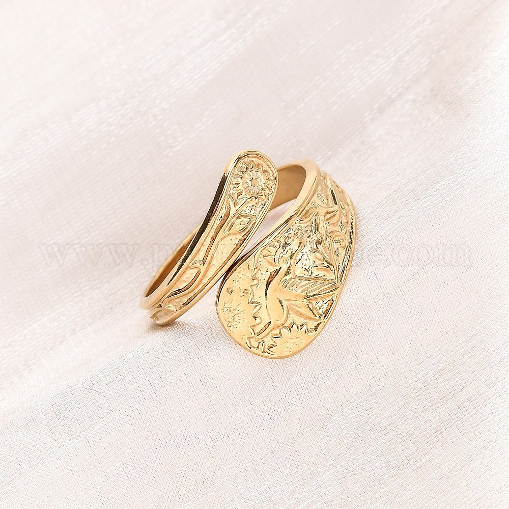 • Настоящее золото 18K 304 открытые манжеты из нержавеющей стали для женщин, птица с цветком, ионное покрытие (ip), реальный 18 k позолоченный, 3~17 мм, внутренний диаметр: 18 мм