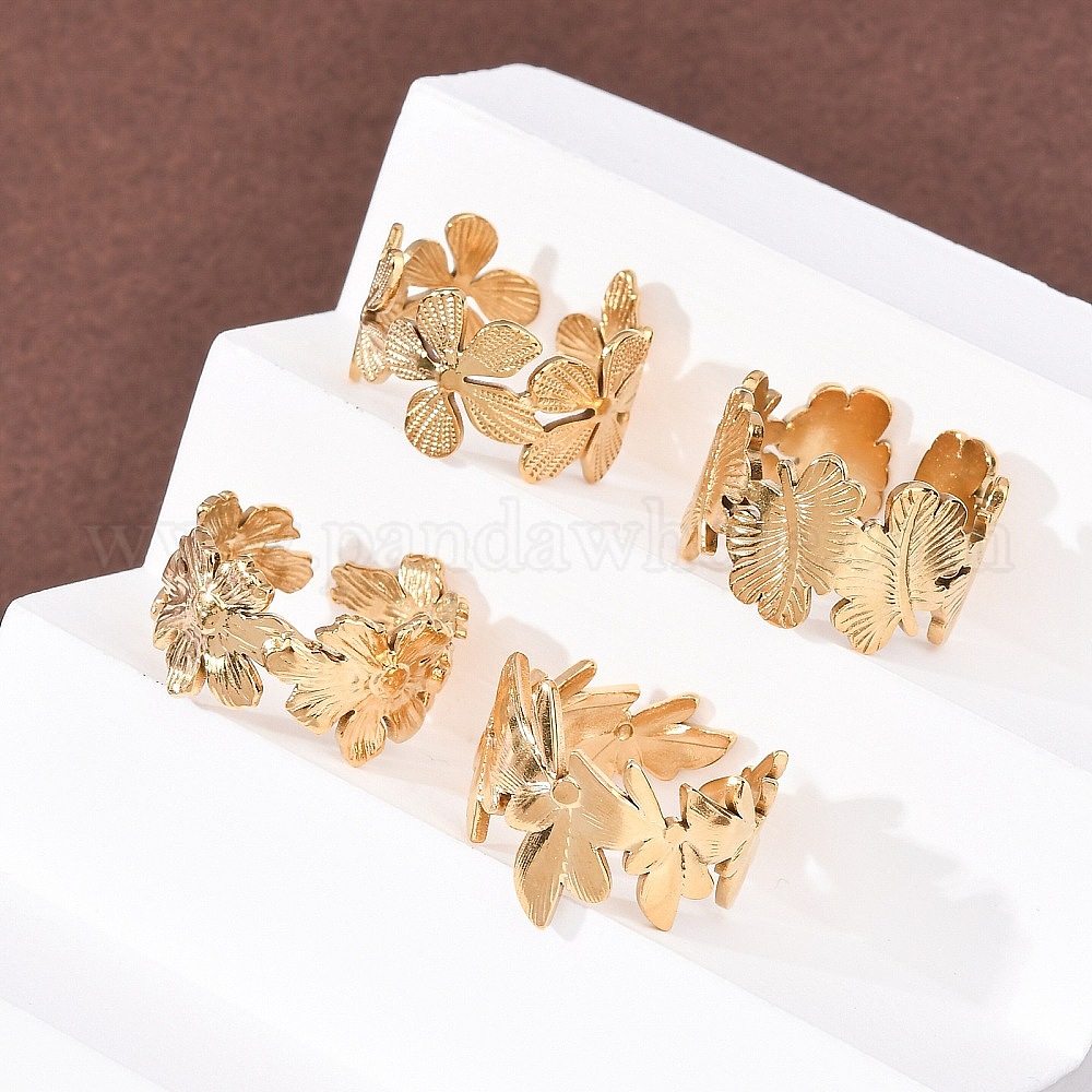 304 открытые манжеты из нержавеющей стали для женщин, цветок / лист, ионное покрытие (ip)