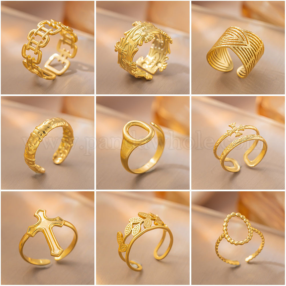 304 открытые кольца манжеты из нержавеющей стали, настоящее 18k позолоченное/цвет нержавеющей стали